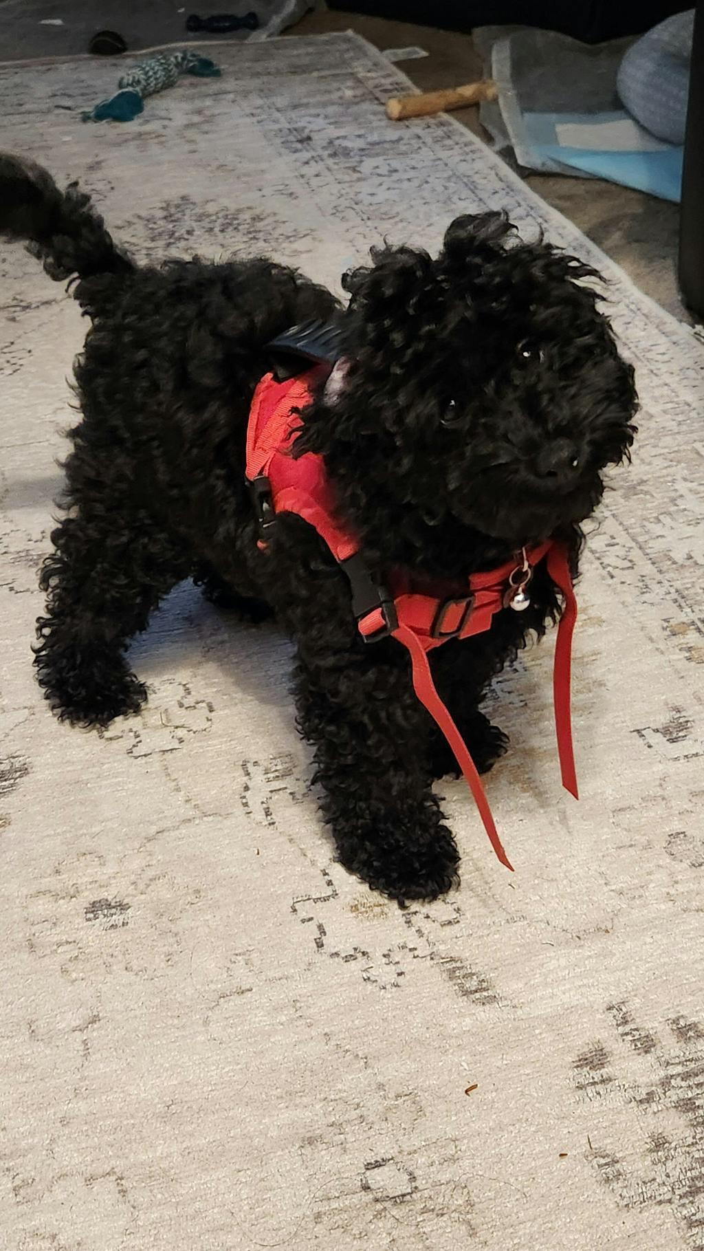 Really happy with this Adjustable Tactical harness. It is waterproof and very durable. I purchased the extra small for my 4month old miniature cavoodle and although she is alittle small for it at the moment, there is plenty of room for her to grow into it.